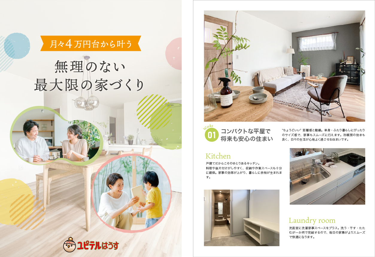 - 住まいの考え方や間取り・施工事例を一冊にまとめたユピテルはうすの家づくりガイドです。家づくりを考え始める方の参考としてご活用ください。